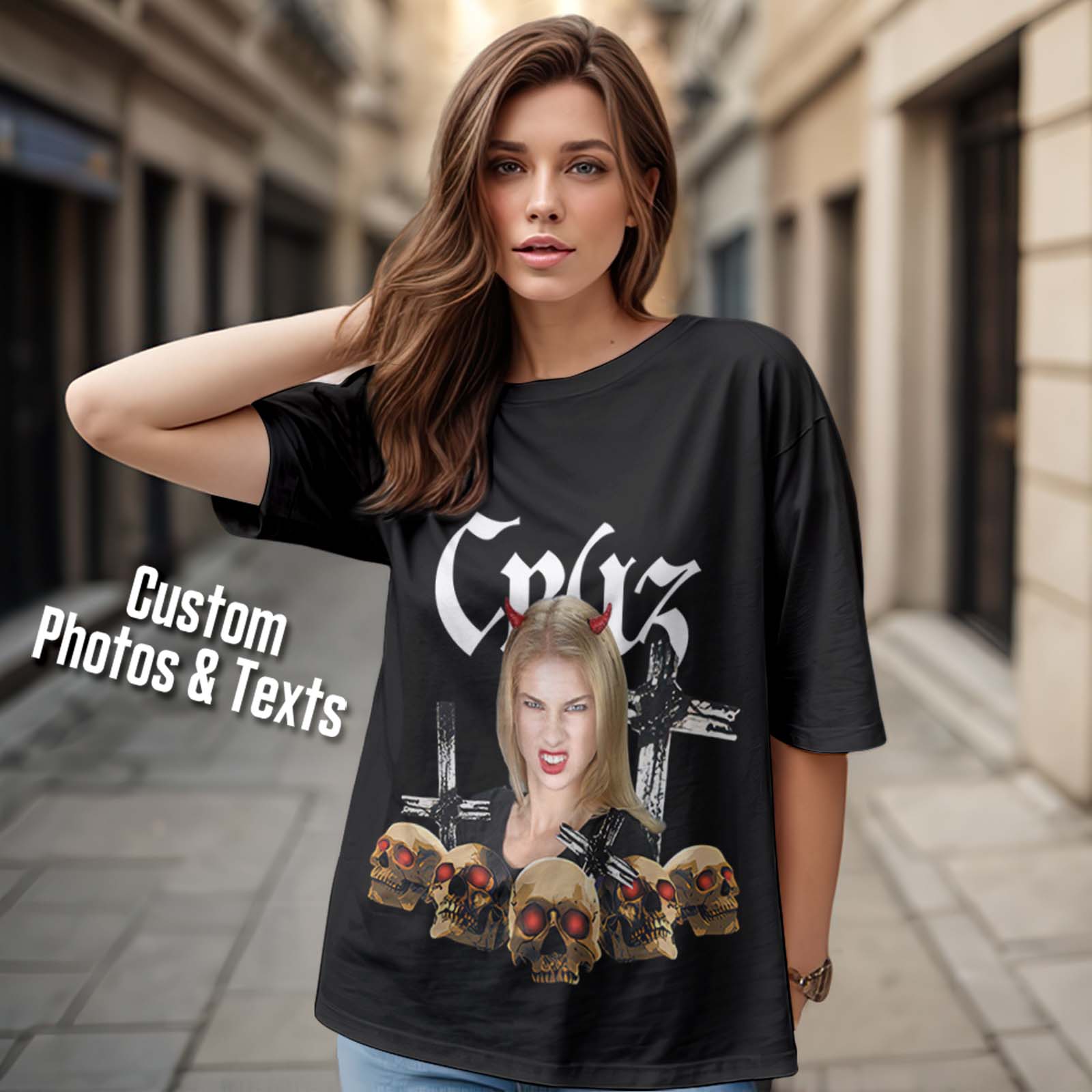 Personalisiertes Foto-vintage-t-shirt, Personalisiertes Portrait-skelett-rap-t-shirt Mit Namen