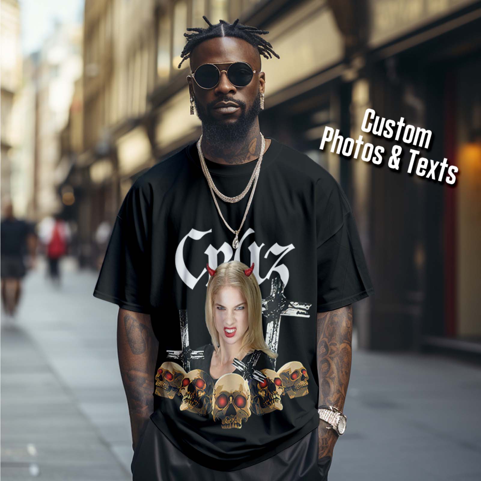 Individuelles Foto-vintage-t-shirt, Personalisiertes Amerikanisches Hip-hop-rap-t-shirt Mit Namen