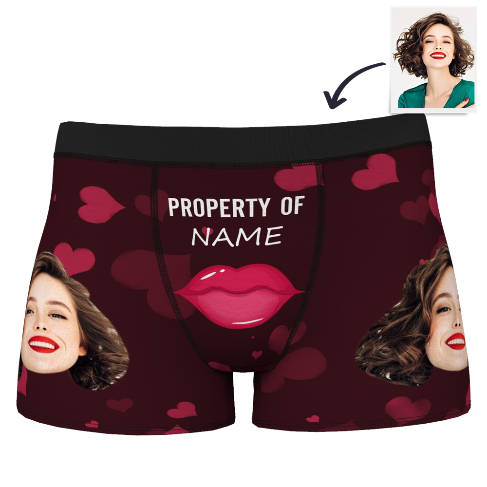 • Personalisierte Herrenunterwäsche Mit Foto, Boxershorts Mit Rotem Lippenstift, Valentinstagsgeschenk Personalisierte Herrenunterwäsche Mit Foto, Boxershorts Mit Rotem Lippenstift, Valentinstagsgeschenk