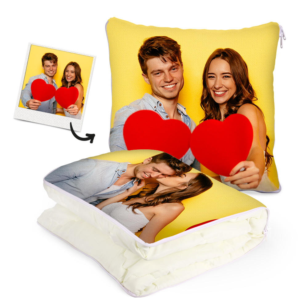Benutzerdefinierte Paar Foto Quillow - Multifunktionales Wurfkissen und Quilt 2 in 1 - 47.25"x55.10"