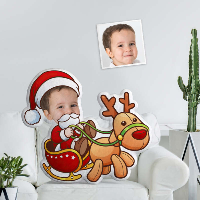 My Face Doll Custom Santa Pillow Funny For Kids Minime Throw Pillow Personalisiertes Baby, Das Eine Weihnachtskutsche Reitet
