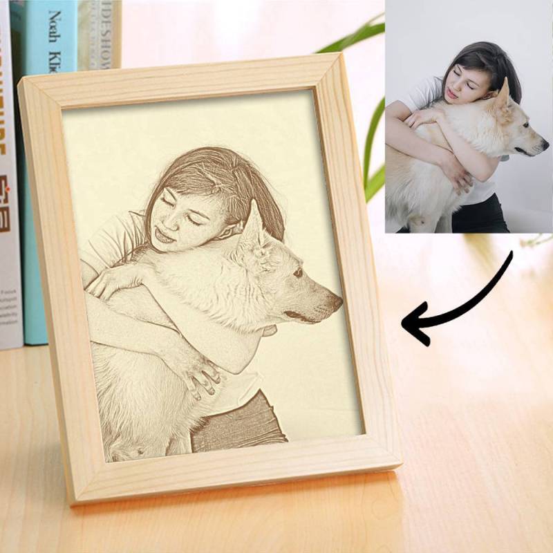 Kreative Niedliche Haustiergeschenke Holz Benutzerdefinierte Fotorahmen Hausdekoration Skizzen-Effekt 5 Zoll