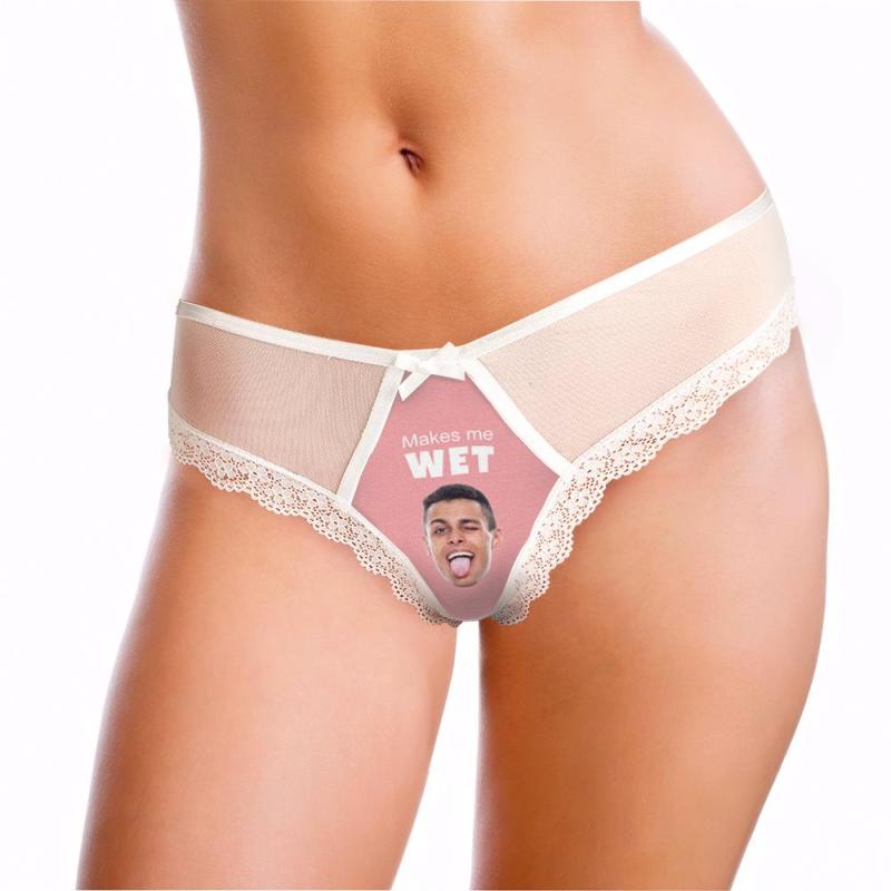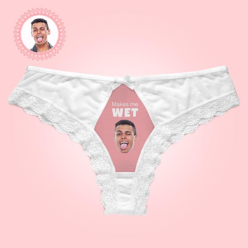 Benutzerdefinierte Spitze Tanga Sexy Spitzenhöschen Lustiges Geschenk Mit Freund Gesicht - Macht Mich Nass