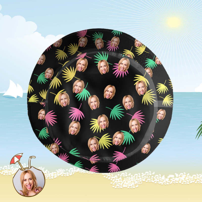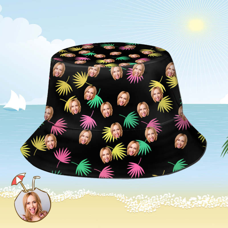 Benutzerdefinierte Eimer Hut Personalisiertes Gesicht als Allover-Print Tropischer Blumendruck Hawaiischer Fischerhut - Bunte Blätter