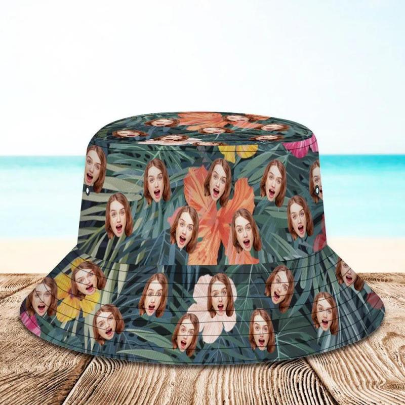Benutzerdefinierte Eimer Hut Unisex Gesicht Eimer Hut personalisieren breiter Krempe im Freien Sommer Kappe Wandern Strand Sporthüte Geschenk für Liebhaber Hawaii-Stil