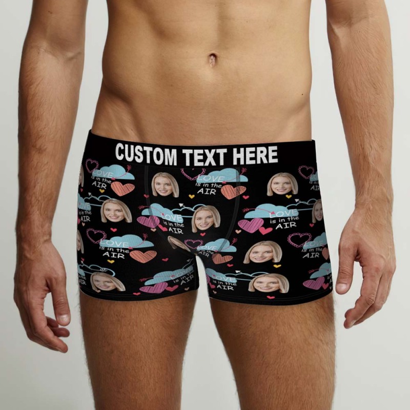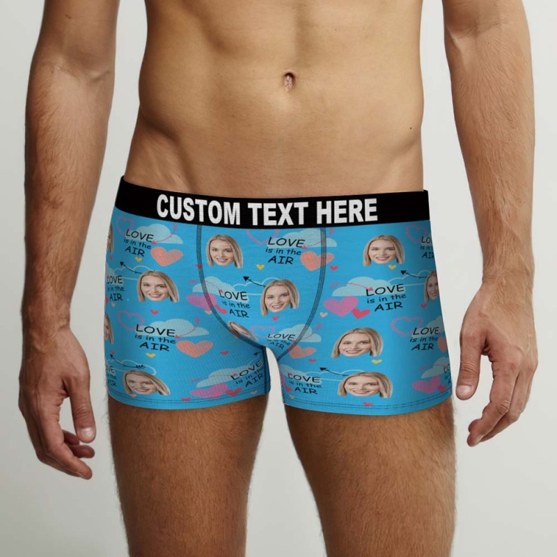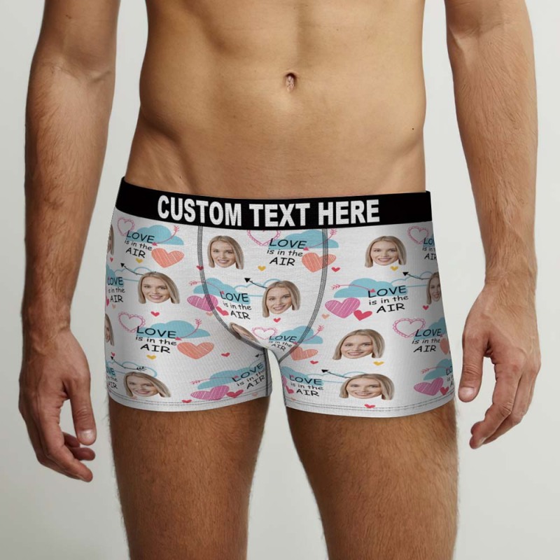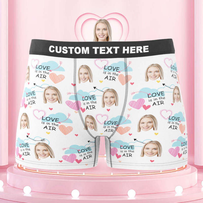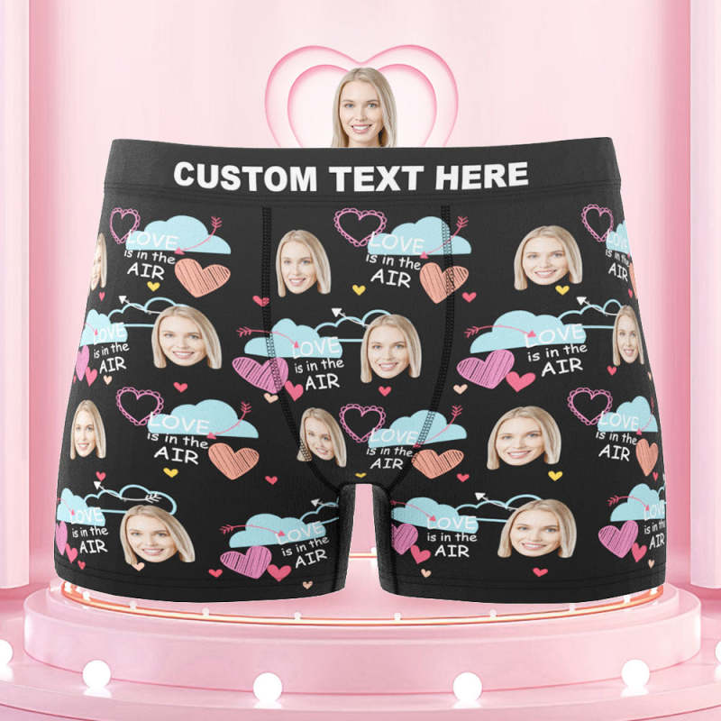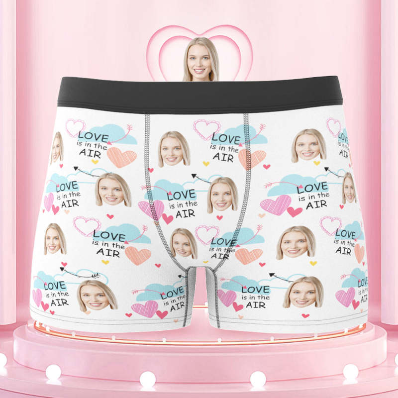 Benutzerdefinierte Gesichts-boxershorts „love Is In The Air“, Personalisiertes Foto-unterwäschegeschenk Für Ihn