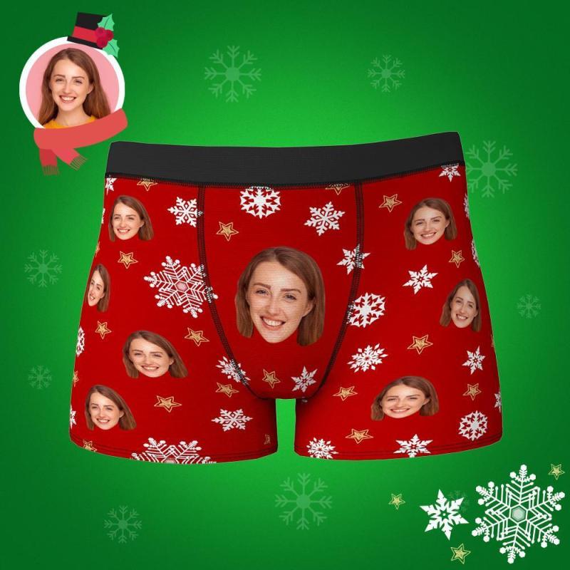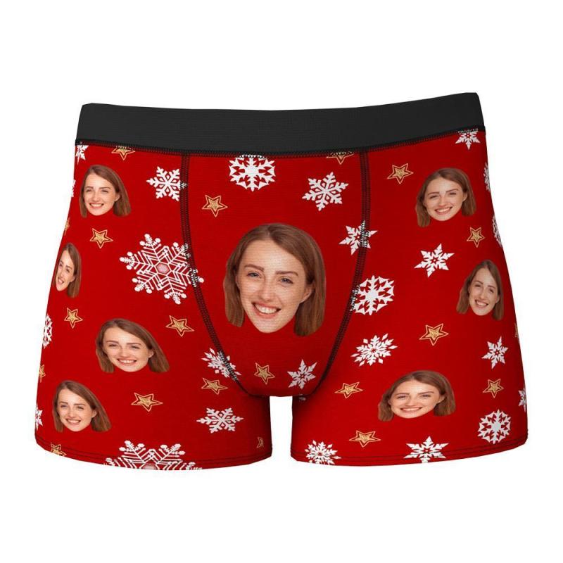 Benutzerdefinierte Gesicht Boxershorts Weihnachten Schneeflocken Personalisierte Foto Unterwäsche Weihnachtsgeschenk für Männer