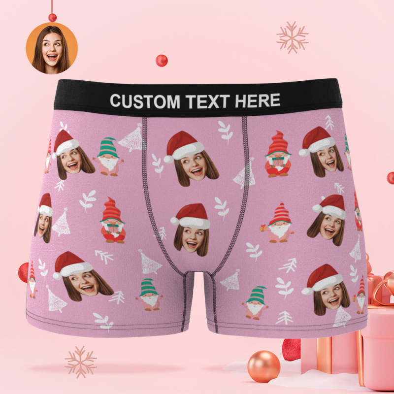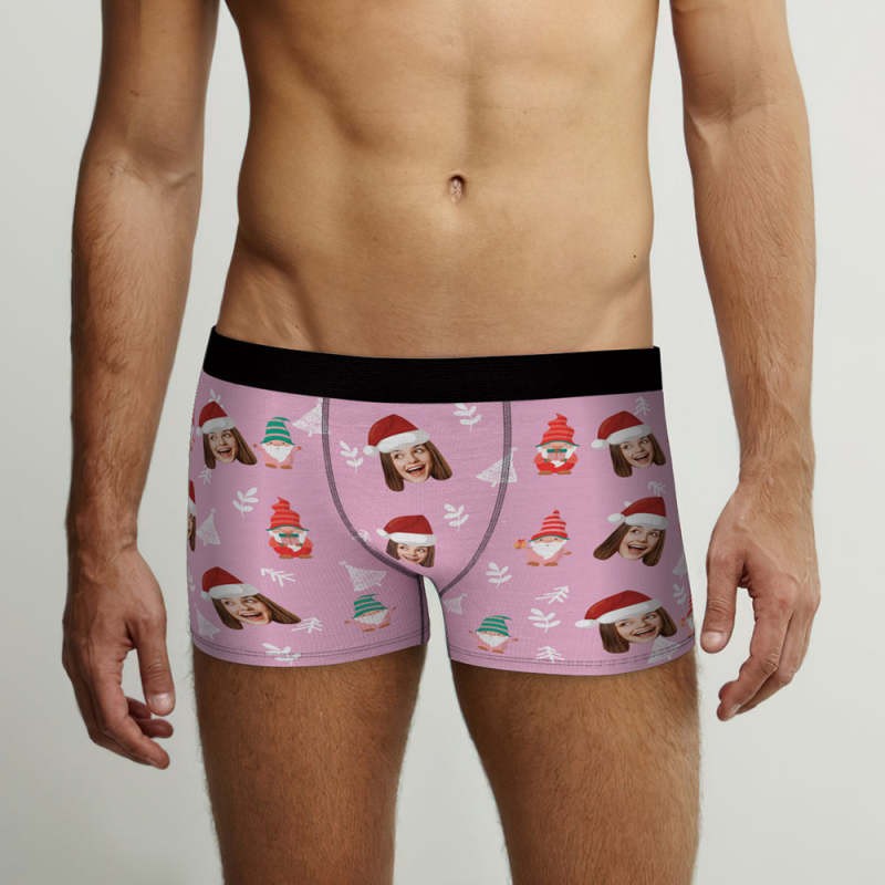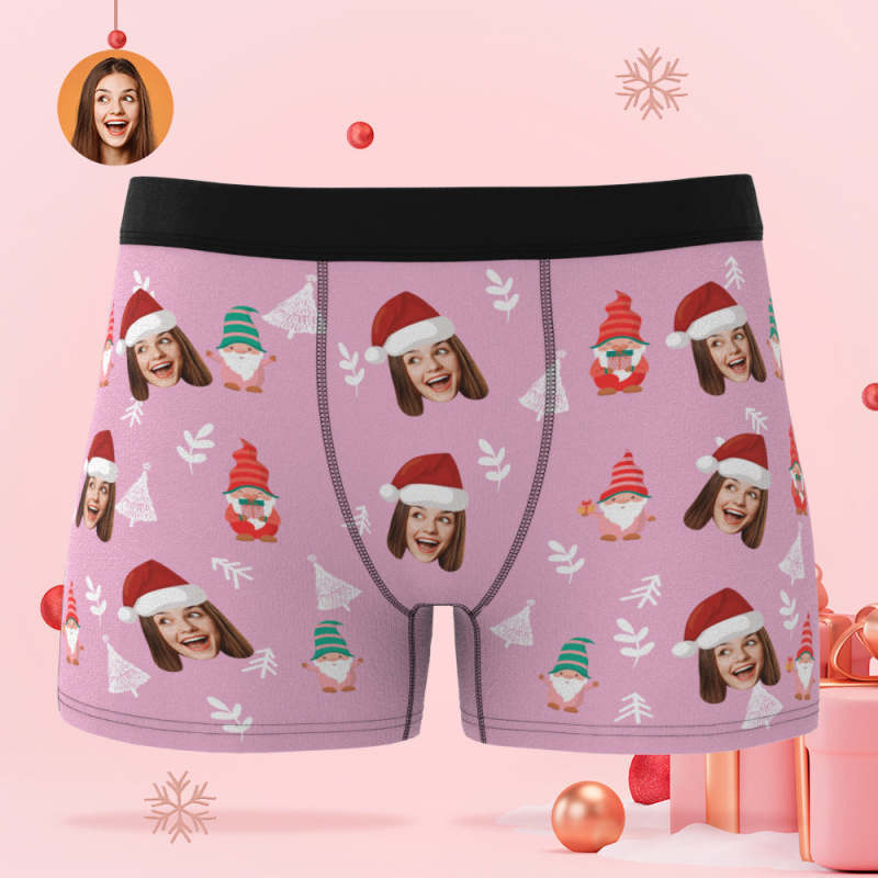 Kundenspezifisches Gesicht Weihnachtszwerge Pink Boxer Briefs Personalisiertes Weihnachtsgeschenk