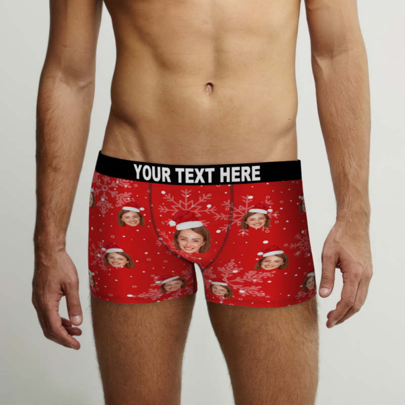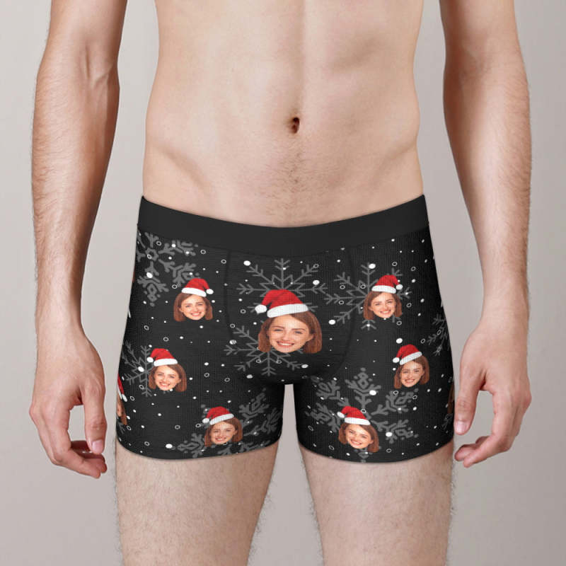Benutzerdefiniertes Gesicht Weihnachten Schneeflocke Boxershorts Lustiges Personalisiertes Gesicht Unterwäsche Weihnachtsgeschenk