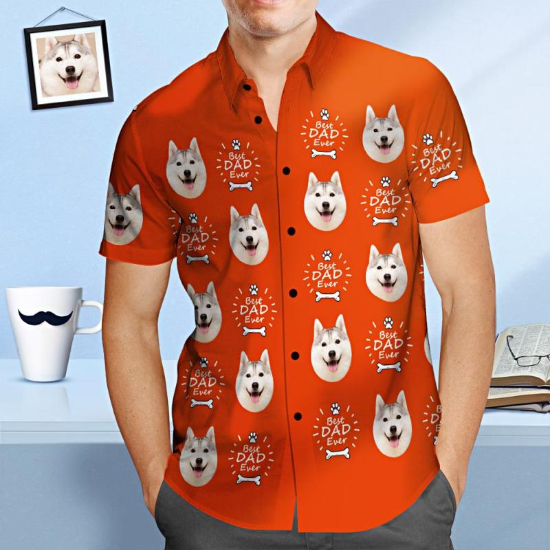 Benutzerdefiniertes Gesicht Hawaii-shirt „bester Hund Papa Aller Zeiten“, Personalisiertes Vatertags-shirt-geschenk Für Papa