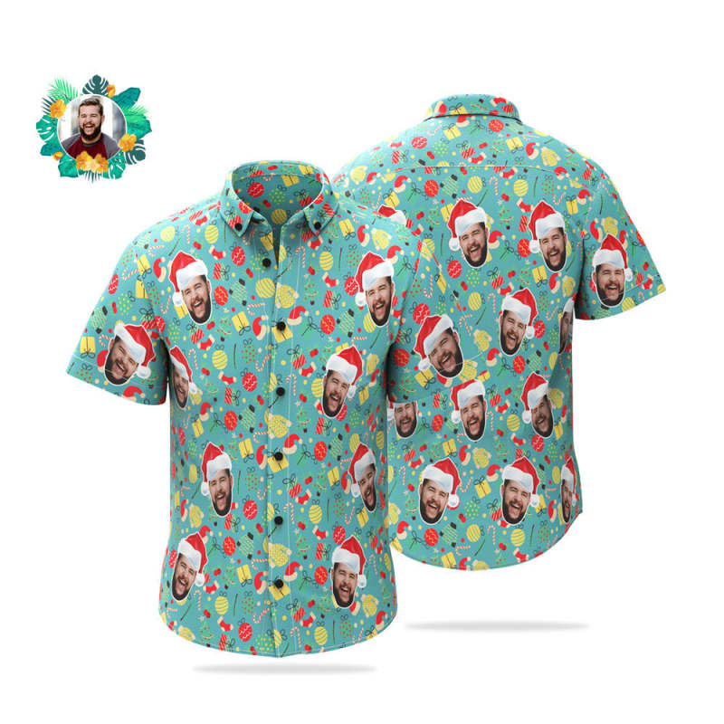 Benutzerdefiniertes Gesicht Hawaiihemd Personalisierte Foto Weihnachtshemden Lustiges Geschenk Für Männer