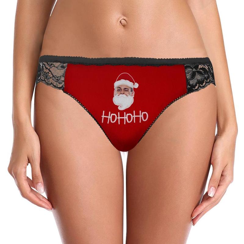 Benutzerdefinierte Gesicht Spitzenhöschen Weihnachtsmann Frauen Sexy Höschen mit Freund Gesicht