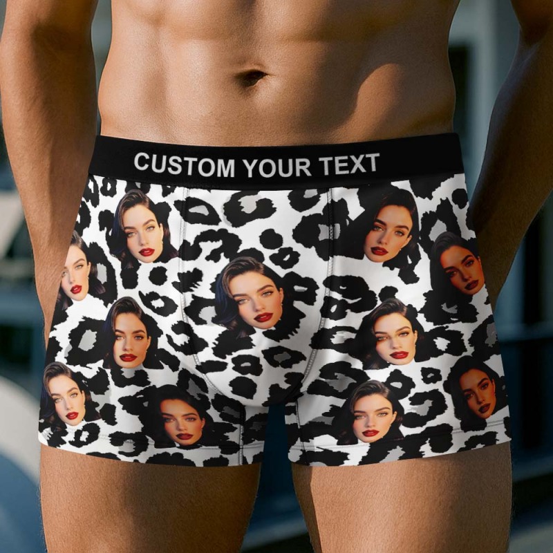 Personalisierte Herren-boxershorts Mit Foto, Atmungsaktive Unterwäsche Aus Eisseide Mit Leopardenmuster