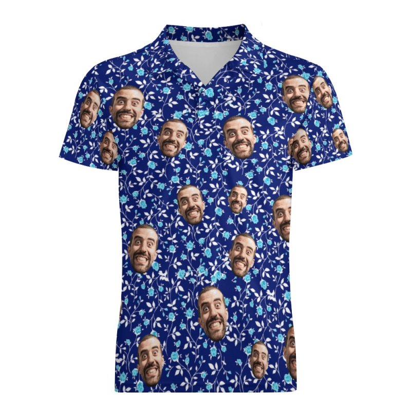 Benutzerdefiniertes Gesicht Poloshirt Für Männer Flower Power Personalisierte Hawaiian Golf Shirts