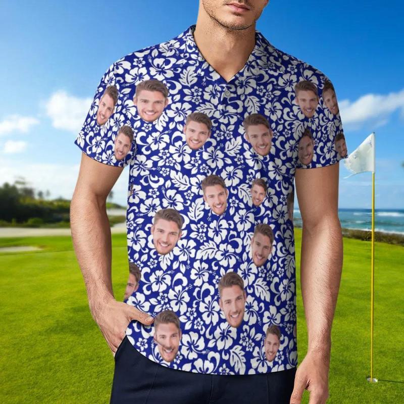Benutzerdefiniertes Gesicht Polo-shirt Für Männer Personalisierte Blaue Hawaii-golf-shirts