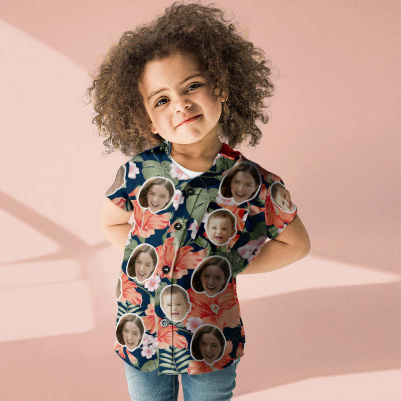 Benutzerdefiniertes Gesicht-Shirt Frauen und Kinder Hawaiihemden Aloha Flowers Muttertagsgeschenk