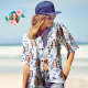 Benutzerdefiniertes Gesicht-Shirt Damen Hawaiihemd Kurzarm Shirt Mode Bekleidung Blaue Blumen