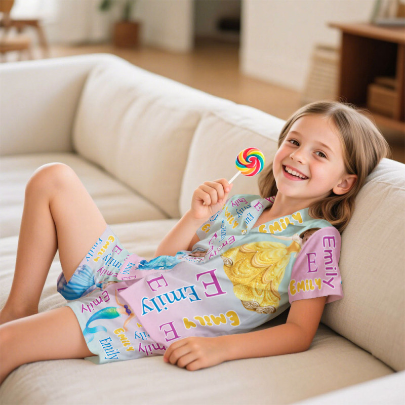 Benutzerdefiniertes Gesicht Kurzarm-pyjama Eisprinzessin-pyjama Für Mädchen