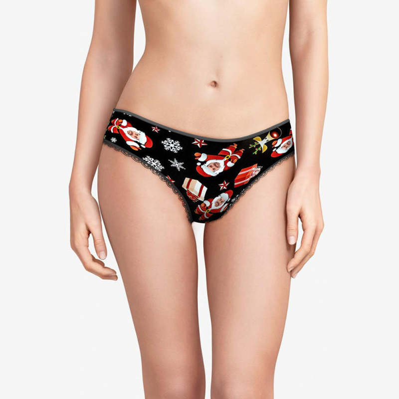 Benutzerdefinierte Gesichts-unterwäsche-personalisierte Frauen-schlüpfer Mit Foto Sankt-schneemann-weihnachtsgeschenken