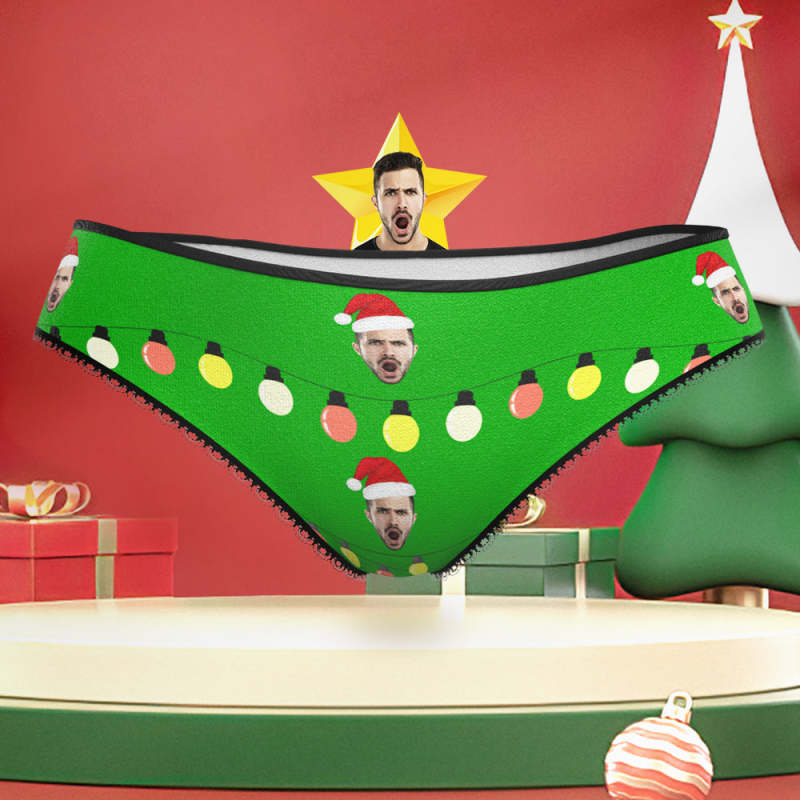 Benutzerdefiniertes Gesicht Mit Weihnachtsmütze Weihnachtsbeleuchtung Unterwäsche Lustige Weihnachtshöschen Für Sie