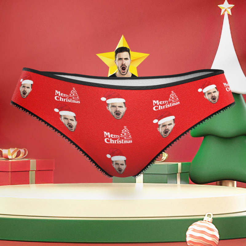 Benutzerdefiniertes Gesicht Mit Weihnachtsmütze Weihnachtsunterwäsche Lustige Weihnachtsschlüpfer Für Sie