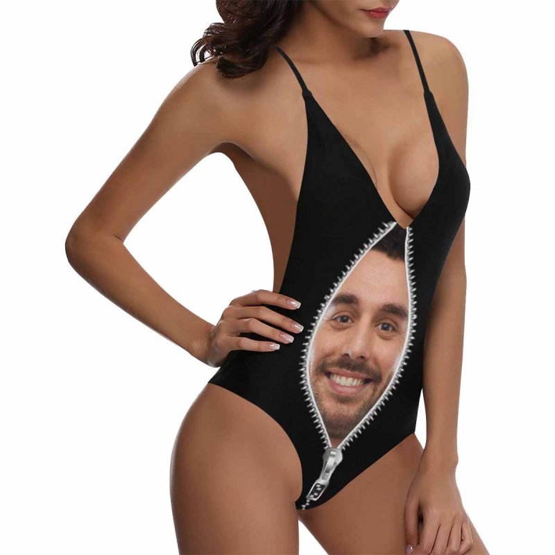 Kundenspezifischer Gesicht Reißverschluss Foto Damen Einteiler Sexy Anzug