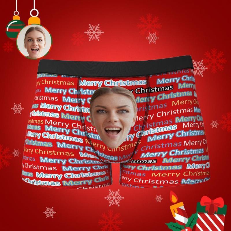 Benutzerdefinierte lustige Gesicht Boxershorts Frohe Weihnachten personalisierte Foto Unterwäsche Weihnachtsgeschenk für Männer