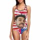 Kundenspezifischer Komisch Gesicht USA Flagge Damen Einteiler Badeanzug