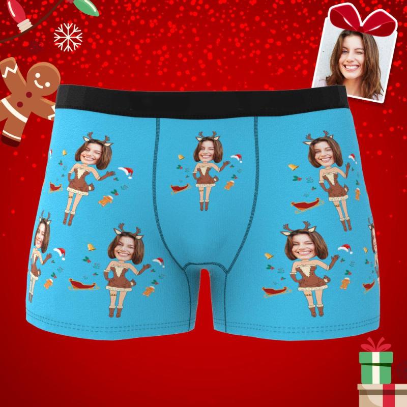 Kundenspezifisches Foto-boxer-weihnachtselch-gesichts-unterwäsche-herrenunterwäsche-paar-geschenke Weihnachtsgeschenk Ar-ansicht