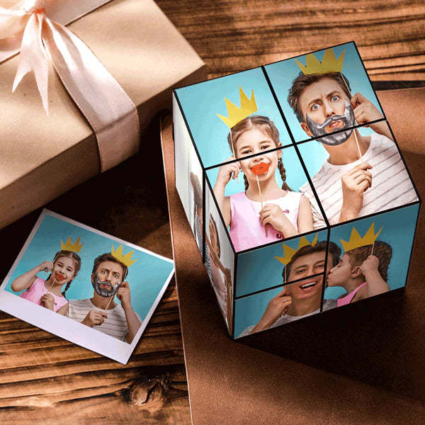 Geschenk für Papa DIY Fotorahmen Rubics Multiphoto-Rahmen Personalisierter Bildcollage-Würfel nicht zusammengebaut