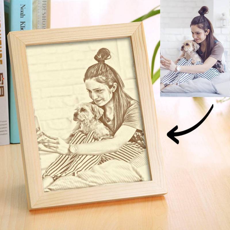 Personalisierter niedlicher Fotorahmen für Haustiere mit Holzskizzeneffekt 8" für die Heimdekoration