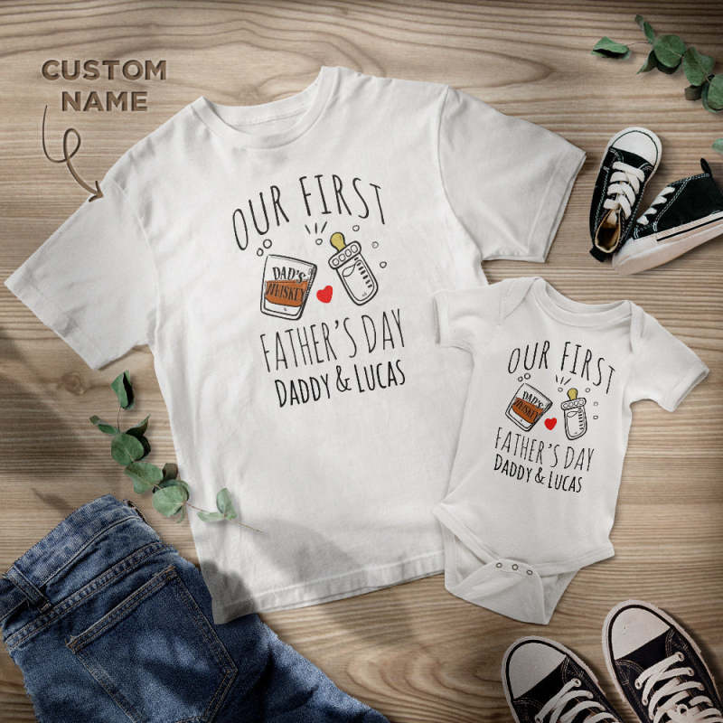 Personalisiertes Namenshemd Individuelles Geschenk für Papa Bier und Liebe Shirt Unser erster Vatertag Papa und Baby passende Outfits