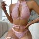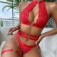 Sexy Neckholder-dessous-set Mit Herzförmigem Ring, Cut-out-kette, Floraler Spitze, Transparentem Strumpfband Und 3-teiligem Design
