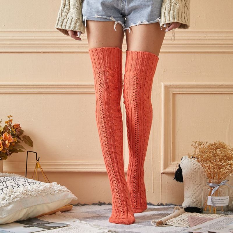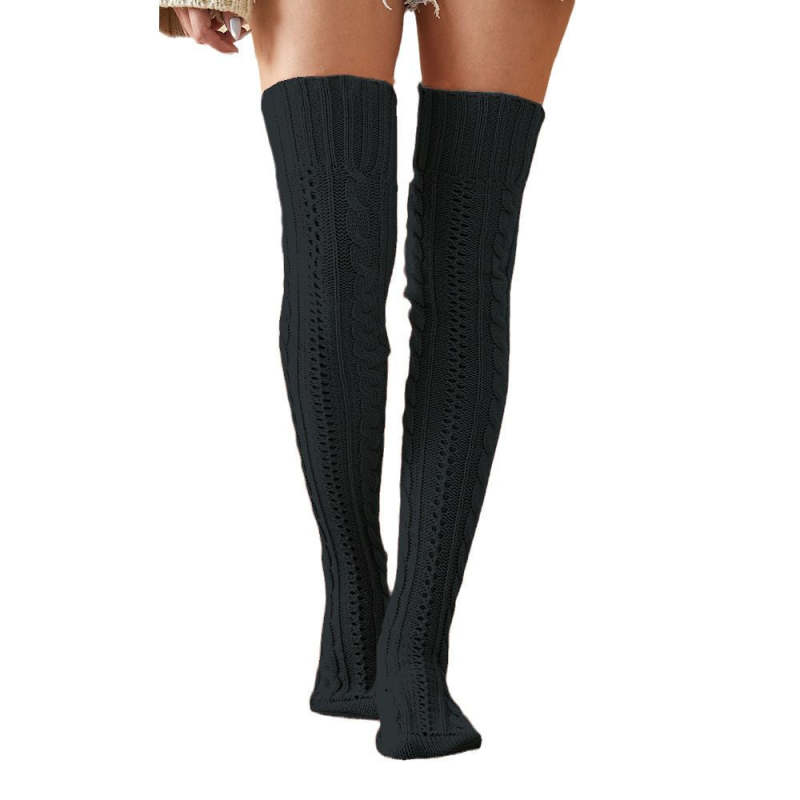 Damen Winter Beinwärmer gestrickte Jacquard Strümpfe Overknee-Socken Bodensocken Stapelsocken