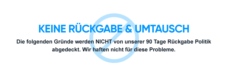 3.Um sicherzustellen, dass Ihre Rücksendung erfolgreich ist, müssen Sie den Kundendienst über Ihre Rückgabebedarf informieren, bevor Sie es zurücksenden. Wenn Sie den Kundendienst nicht im Voraus über Ihre Rücksendeanfrage informieren, besteht die Gefahr, dass Pakete verloren gehen, und Ihre Rücksendeanfrage wird nicht akzeptiert. (Unsere Poststelle nimmt keine unangekündigten Pakete an und wird per Kurier oder Post an den Ursprungsort zurückgeschickt). Bitte beachten Sie auch, dass sich die „V