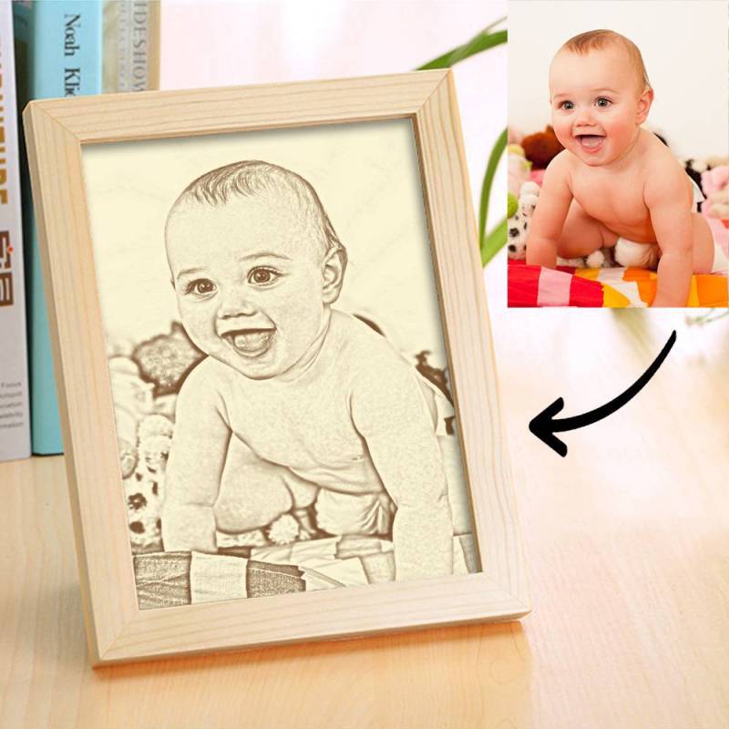 Personalisierter Fotorahmen für Baby mit Holzskizzeneffekt 10 Zoll Heimtextilien