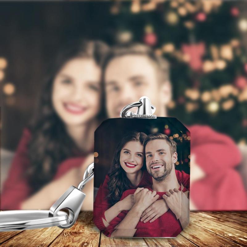 Benutzerdefinierter Kristall Foto Schlüsselanhänger Personalisiertes Geschenk für Paare