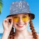 Benutzerdefinierter Fischerhut, Unisex, Blau Kariert, Fischerhut, Personalisierter Buchstabe