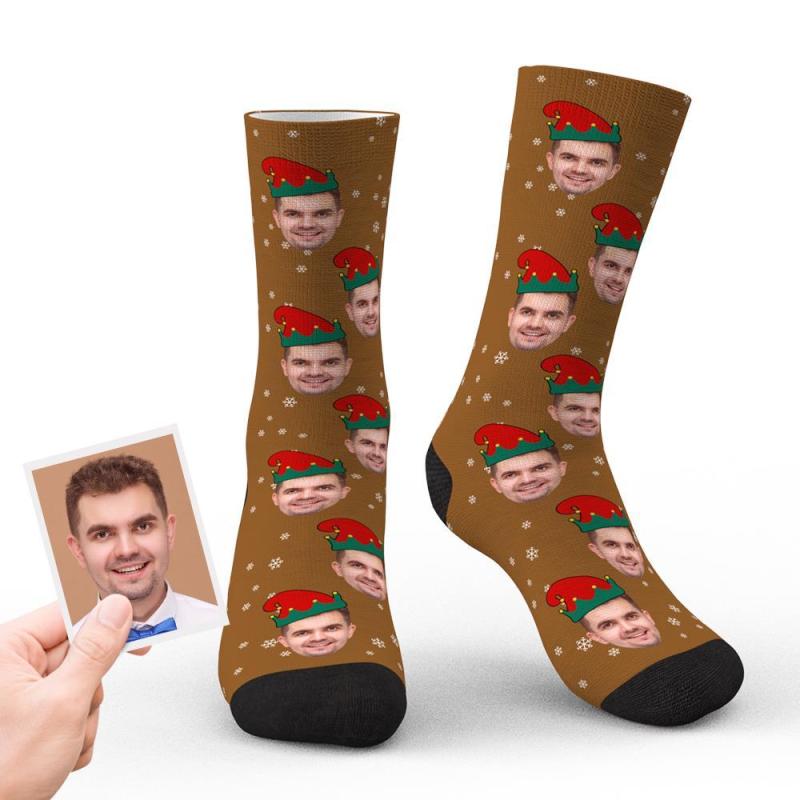 Individuelle Weihnachtssocken Personalisierte Socken mit lustigem Gesicht - Weihnachtself