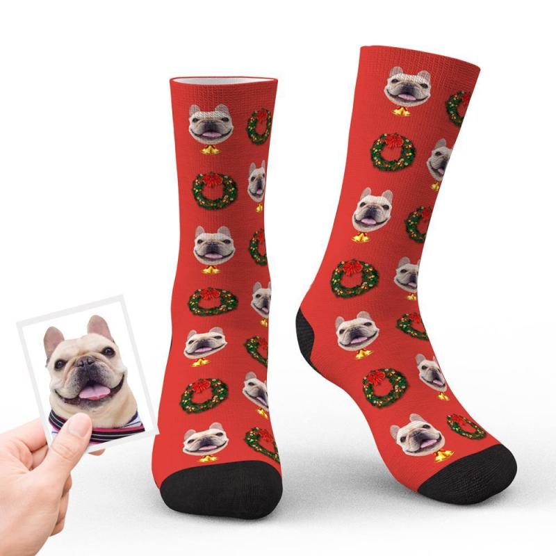 Benutzerdefinierte Weihnachtssocken Personalisierte Gesichts-lustige Socken - Weihnachtskranz