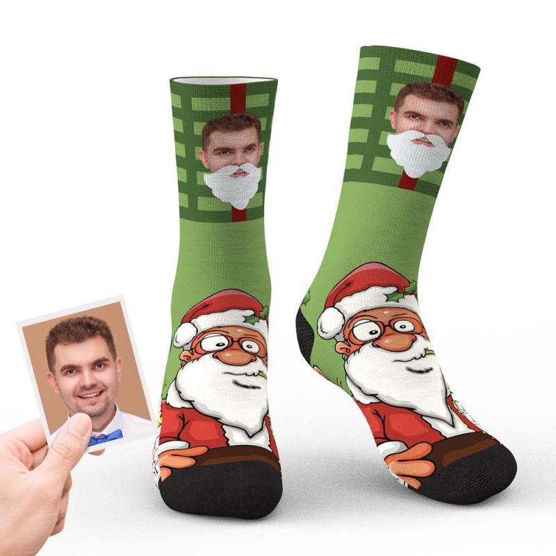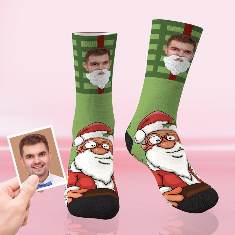 Benutzerdefinierte Weihnachtssocken mit personalisiertem Gesicht - Weihnachtsmann