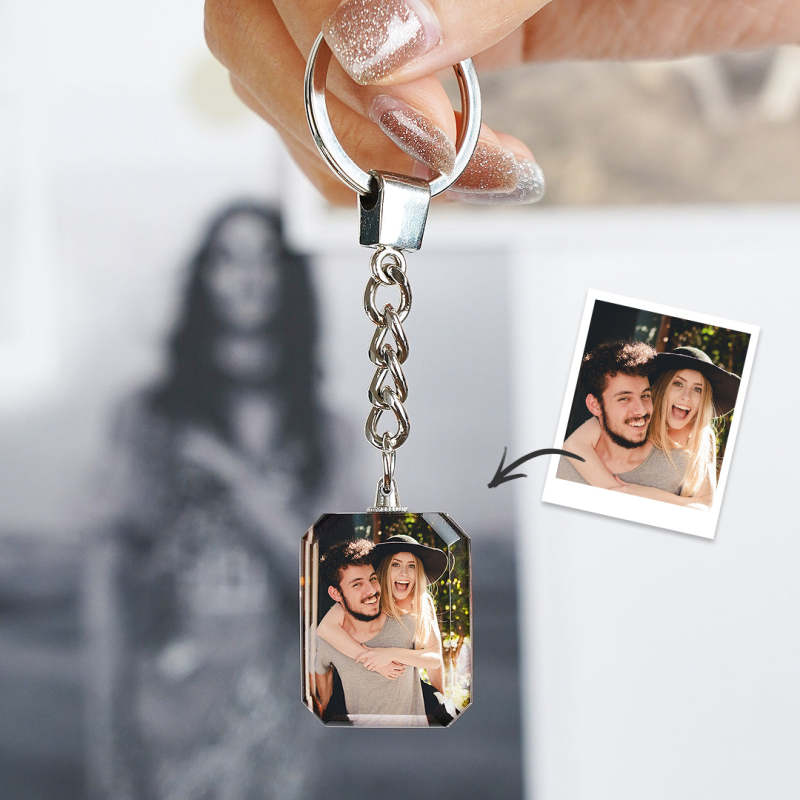 Benutzerdefinierter Kristall Foto Schlüsselanhänger Personalisiertes Geschenk für Liebhaber