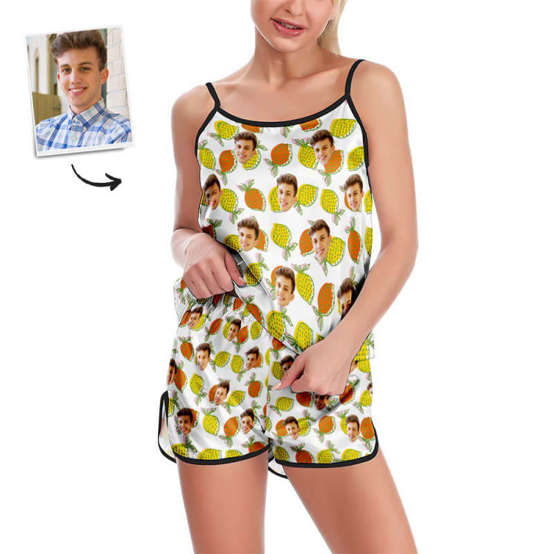 Benutzerdefinierte Gesicht Camisole Nachtwäsche Bunte Zitrone Personalisierte Dessous Set Sommer Pyjamas