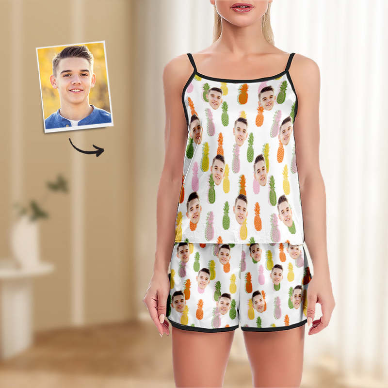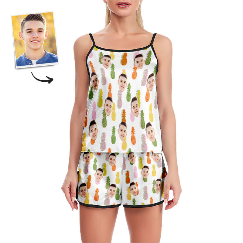Benutzerdefinierte Gesicht Camisole Nachtwäsche Bunte Ananas Personalisierte Dessous Set Sommer Pyjamas