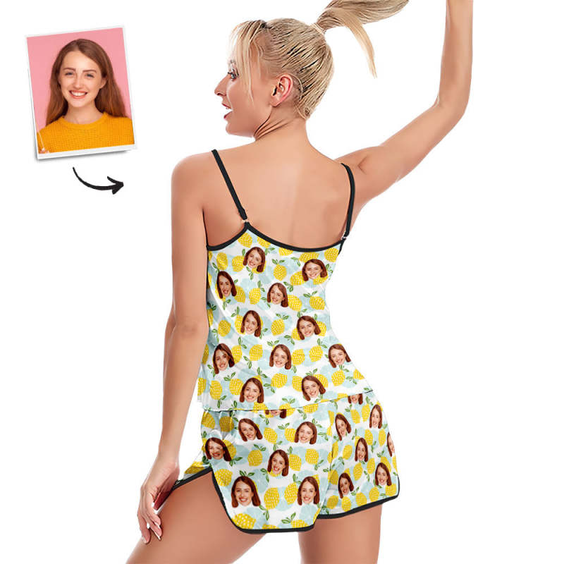 Benutzerdefinierte Gesichts-camisole-nachtwäsche, Frische Zitrone, Personalisiertes Dessous-set, Sommer-pyjamas