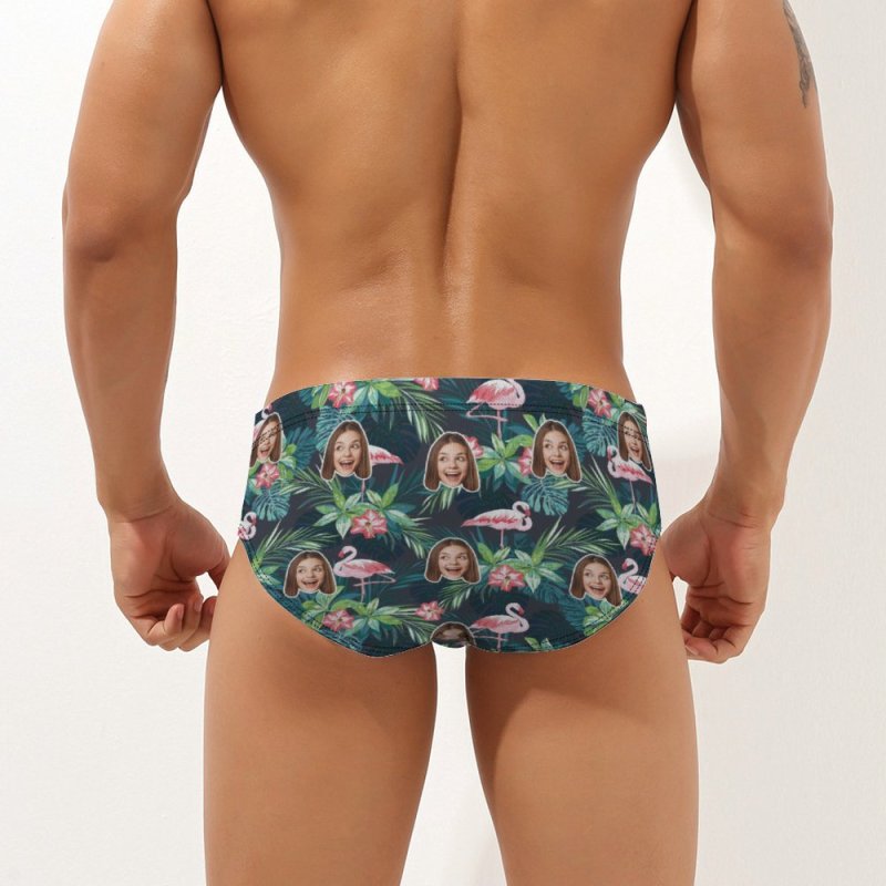 Custom Face Hawaiian Style Herren Badehose Personalisierte Flamingo Dreieck Badehose