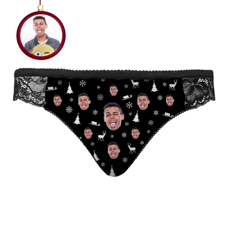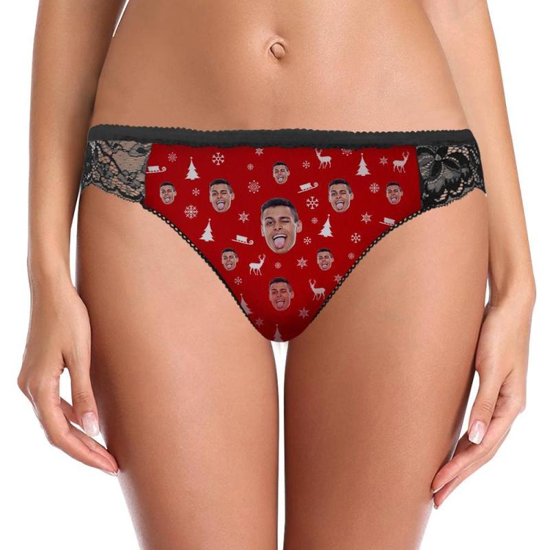 Benutzerdefiniertes Gesicht Spitzenhöschen Frohe Weihnachten Frauen Sexy Höschen mit Freund Gesicht