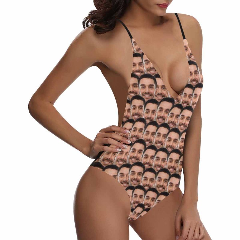 Kundenspezifischer Gesicht Foto V-Ausschnitt Einteiler Badeanzug