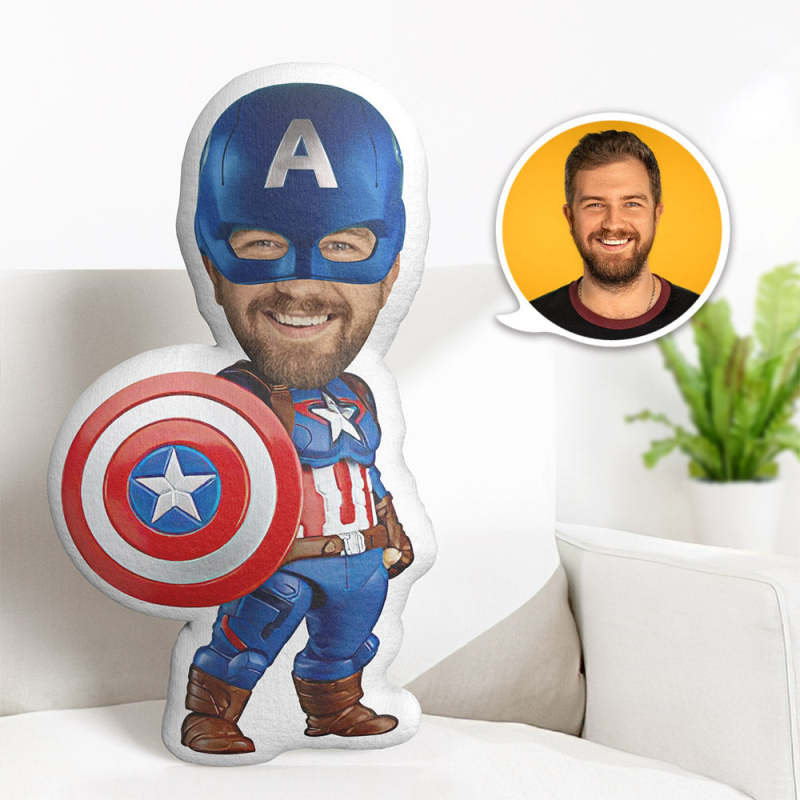 Benutzerdefiniertes Gesichtskissen Personalisiertes Fotokissen Schild Captain America Minime Kissengeschenke Für Ihn