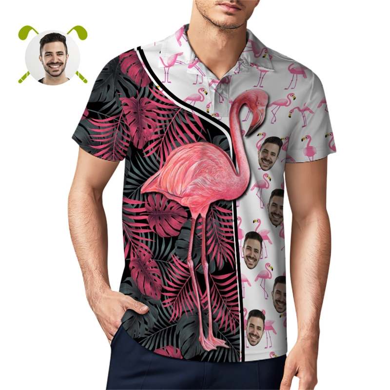 Benutzerdefiniertes Gesichts-poloshirt Für Männer. Lustige Flamingo-hawaii-golf-shirts